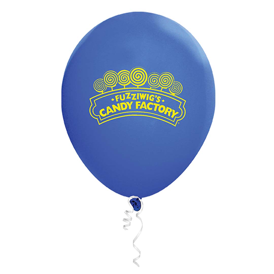 Helium quality 11″ latex balloons, superior Zenith silk-screen printing.